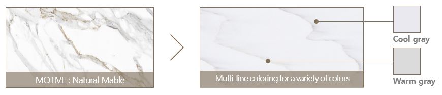 - LOTTE's unique technology allows for the creation of natural mable pattern.
